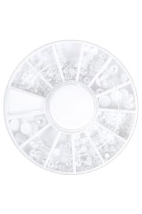 Display Perlen weiss für deine Nailart. Dieses Display beinhaltet halbe Perlen in verschiedenen Grössen.